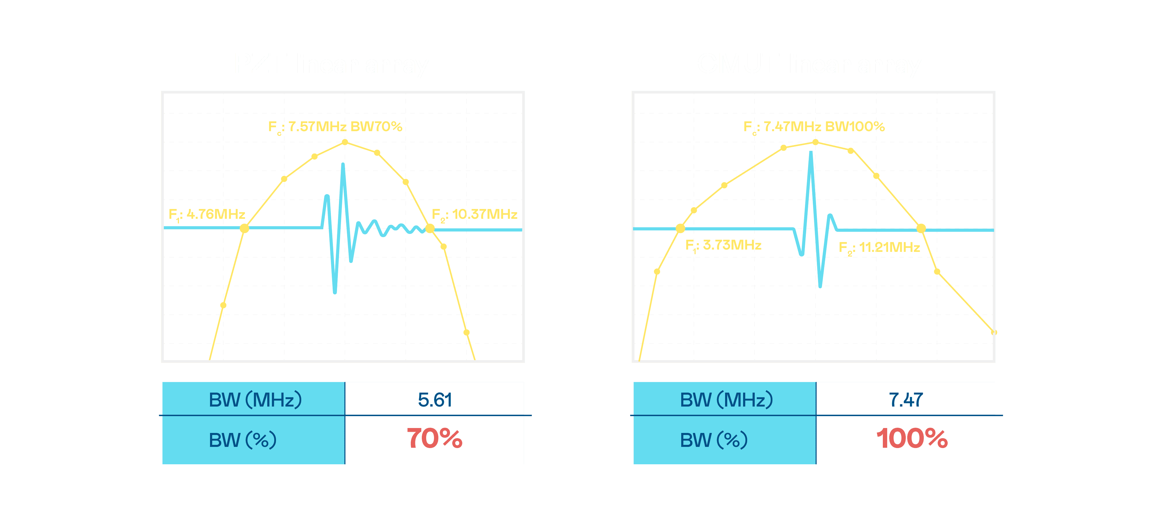 超音波影像的解析度高低,,首先取决于探头能发出的讯号频宽。。。尊时凯龙 CMUT 可提供高清晰的超音波讯号,,提供高频宽、、、、高灵敏度、、影像纹理细节更高的超音波影像,,,协助医护人员缩短影像判读时间及利用精准的医疗影像进行诊断。。